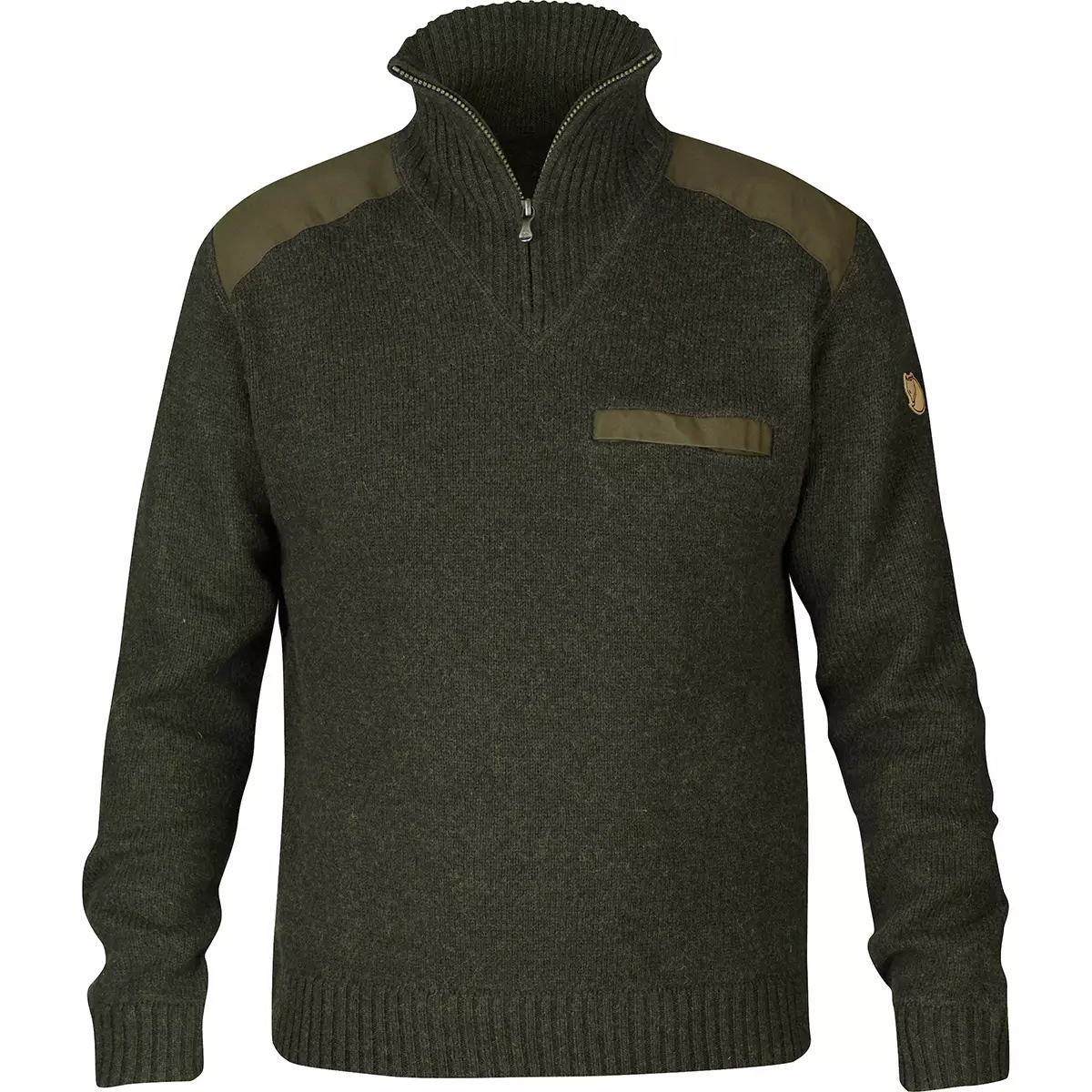 Knitted lamb's wool sweater in warm and soft quality. G-1000 reinforcements on elbows and shoulders. Short zipper and a chest pocket.