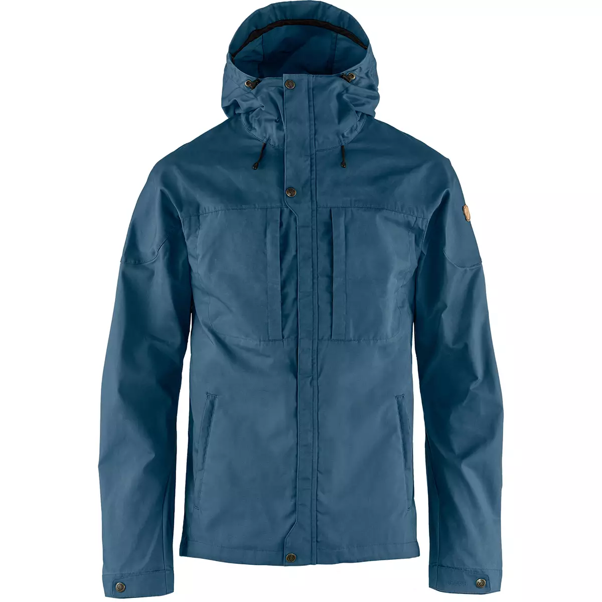 Hip-length outdoors jacket that is slightly longer in the back and has a fixed, adjustable hood. Just as comfortable trekking as it is when biking to and from work. It provides protection from the wind and light rain showers while also offering good ventilation, which means that you will not become as sweaty as you would when wearing a fully waterproof garment. It is made from G-1000 Lite and has G-1000 Original on the shoulders. Two vertical breast pockets and two side pockets, all of which are hidden behind flaps. Two-way zipper in the front hidden behind a protective flap that has push buttons at the hem, in the middle of the chest and at the chin. Adjustable hem and push buttons at the sleeve cuffs.