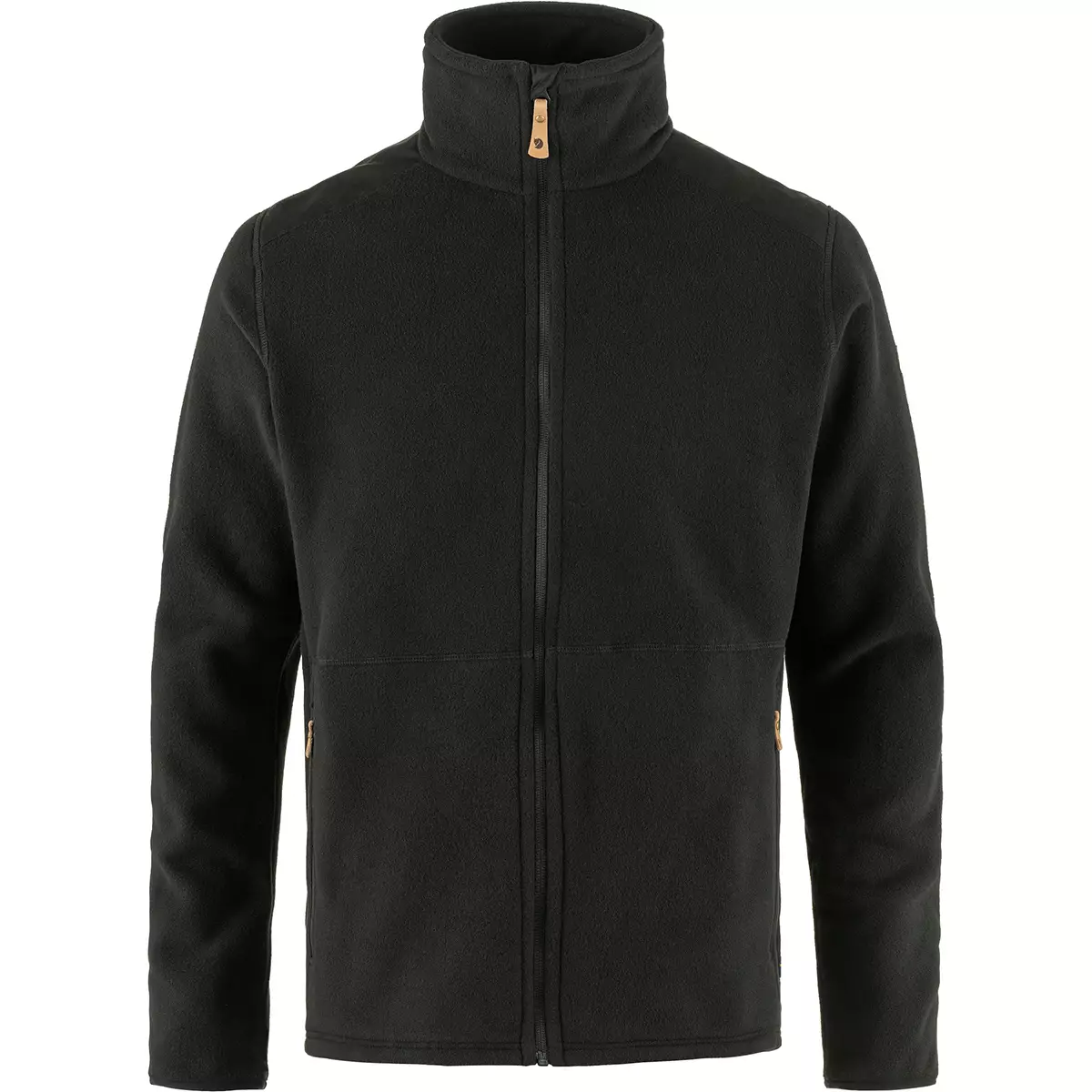 Lightweight and soft fleece sweater made from recycled polyester with a slightly marbled look. Just as comfortable under a shell jacket when gazing out from the Skierfe cliff on a crisp day as it is attractive on its own as dusk falls over your summer cabin. The fleece is manufactured in an environmentally friendly process that both spins and dyes the thread in the same step. For this model, that means about 50 percent less water and 31 percent less energy consumption compared to a traditionally produced fleece sweater. Reinforcement in durable G-1000 over the shoulders results in less friction under your backpack's shoulder straps. High collar protects you from biting winds, and there is a protective flap of fleece between the zipper and chin. Two spacious zippered side pockets. All of the zipper flaps are made from natural tone leather.