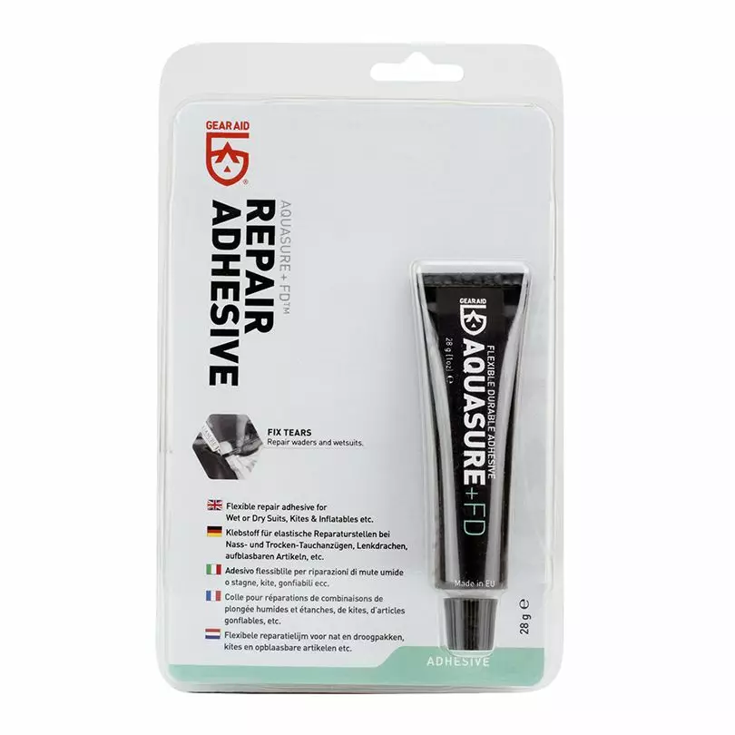 Aquaseal FD is a clear, waterproof adhesive that quickly repairs outdoor gear. It offers excellent abrasion resistance and cures to a flexible rubber glue. Ideal for fixing gear in constant motion, it can also be used as a seam sealer. Don't let rips, tears, and holes stop you, fix it with Aquaseal FD.