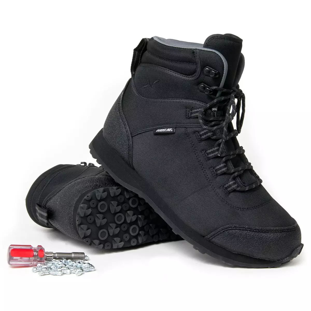 Kaitum Boots with rubber sole are our lightest boots, an affordable alternative for the fisherman who fishes moderate amounts and have high priority on weight before stability. The shoe is made of fast drying materials that does not soak up water. Gusseted tongue and webbing loops for the laces make for fast entry and closing of the boots. The upper part of the boot has quick-lacing hooks and in the back you find a wide webbing loop. The lower part of the boot is reinforced with rubber on heel and toe to resist hard environments and sharp rocks when wading and an EVA mid sole increases comfort and cushioning when walking. Kaitum boots have a wide Scandinavian fit and are extremely lightweight and fast drying which makes them ideal for the travelling angler.