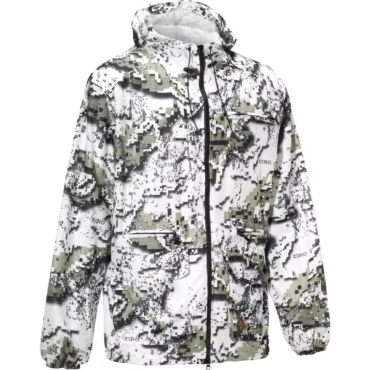 Maailmaa mullistava DESOLVE kuvioinen naamiopuku. Valmistettu kevyestä ja sileästä materiaalista, jossa hyvä hengityskyky. Kiinteä huppu ja säädettävät hihat sekä lahkeet. Tilavat taskut ja erikoistasku radiota varten.