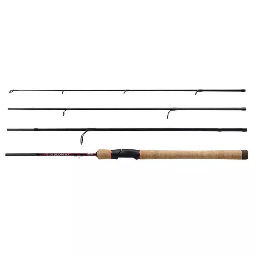 The famous DIPLOMAT range stands for mobility and travelling. These spinning rods are very short in transport length due to their 4 or 5 section blank design, but they fish and feel like a conventional 2 section rod! Ideal rods to bring on holiday or to keep in the back of your car - always ready to fish! The range contains a number of different lengths and casting weights, so plenty of opportunities for different techniques, species and situations. The rods come with a strong travel tube case.