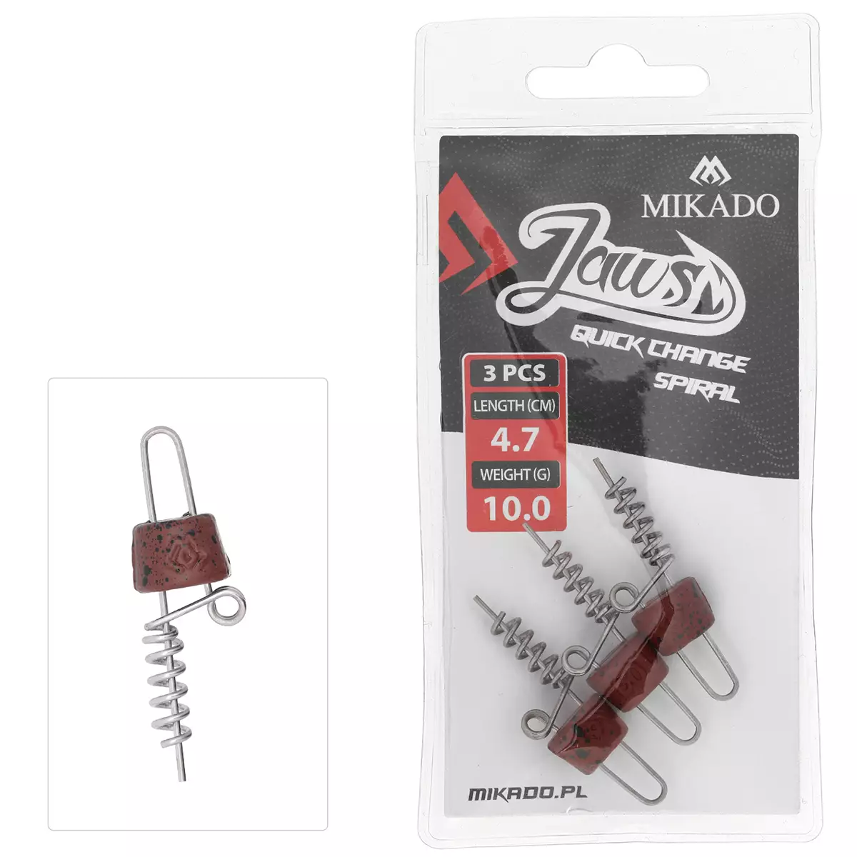 A spiral for soft lures with a quick change-of-weight system, that does not require the spiral to be removed from the lure during the process, keeping the rubber intact even when the weight needs to be changed a few times.