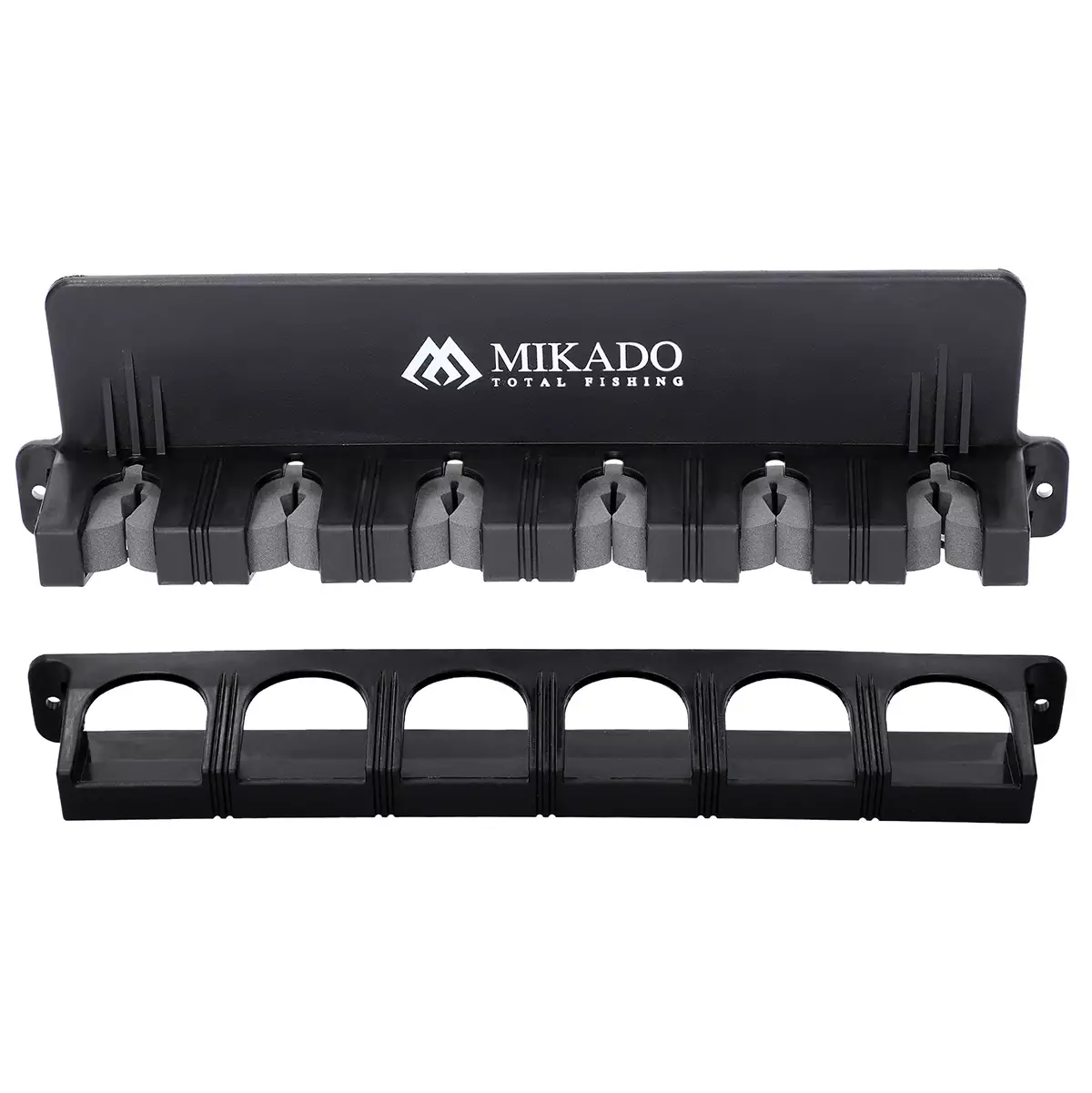 Easy to assemble, 6 rod vertical storage rack; can easily be mounted on your garage's wall. Light and compact, fitted with a safe-for-blank foam. Mounting pins included in the set.