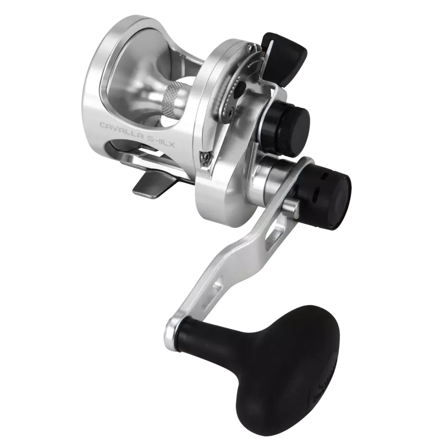 The Cavalla 2-Speed Lever Drag reel is a compact-bodied machine built to handle the toughest of conditions. This reel is built with 6061-T6 machined aluminum frame and side plates. The rigid 1-piece frame continues around to the non-handle side plate. This rigid frame combined with a cold forged, type-II anodized machined aluminum spool give you a sleek and rugged weapon. The Cavalla reels feature a battle-proven carbonite drag system with Cal’s drag grease that puts out 24 to 34 pounds of drag at full. The 17.4 grade stainless steel main and pinion gear as well as the CRC: Corrosion Resistance Coating process make this reel virtually corrosion resistant. Add to that 4 corrosion-resistant stainless steel bearings and a silent retrieve system for complete smooth operation. The Cavalla 2-speed reels feature a 6.4:1 and 3.8:1 gear ratio on the 5 size reels and a 4.7:1 and 2.1:1 gear ratio on the 12 size. Both the 5 and 12 size reels come in left and right hand retrieve and feature an on/off bait clicker. This reel is compact and comfortable, and features an Ergo Grip handle knob and anodized aluminum handle arm.