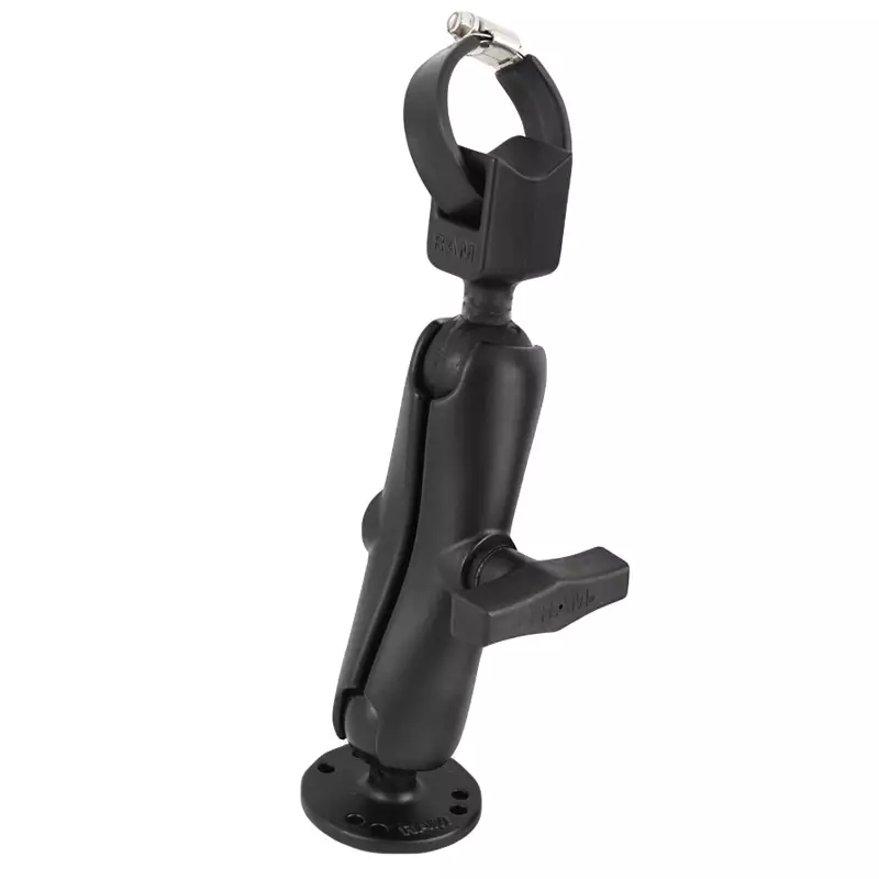 Includes strap hose clamp base with C size 1.5" rubber ball, medium length C size double socket arm, and 2.5" round plate with C size 1.5" rubber ball