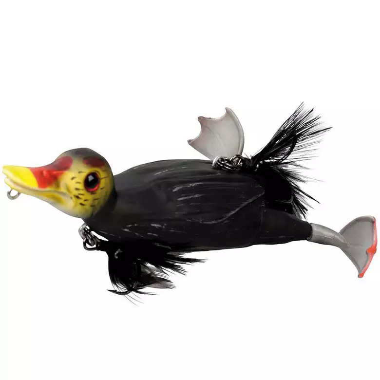 A highly realistic topwater duckling imitation lure loaded with innovative features. The 3D scanned details will fool even the most cautious predator fish and ensure brutal attacks and hook-ups. It is made with a hard, ultra-strong ABS body with semi soft and durable feet. The spinning feet give the lure an incredible lively splashing action, leaving a bubble trail in its wake, calling in predator fish from distance. For open water fishing, two feather-covered treble hooks, one on the chest and one on the back clipped to the body, ensure a good hook-up rate. For fishing in snaggy conditions, you can easily remove the treble hook on the belly – the lure is designed so it always lands on the belly with the exposed treble hook on the back. The lure has two styles of action: attach the line to the beak and the lure will run with a low, discreet posture, like a duckling trying to hide and escape at the same time. Attach the line to the chest and the lure will run higher, with a more panicky fleeing action. The lure can be fished fast or slow, with steady retrieve or long pulls – mimicking a duckling in the most realistic way. A killer lure for pike, bass, musky and big, brutal catfishIt is said that a great topwater strike counts for 10 regular hits – tie on the Suicide Duck and judge for yourself.