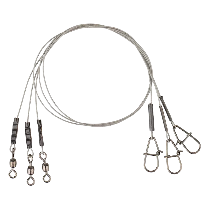 Erittäin vahva, pehmeä ja joustava 49-säikeinen ruostumattomasta teräksestä valmistettu peruke. Kestävä hiili kopolymeeripinnoite antaa huikean hankaus- kestävyyden! Täydellisen kokoinen leikari ja lukko sekä koville, että pehmeille vieheille. Täydellinen haukiperuke!