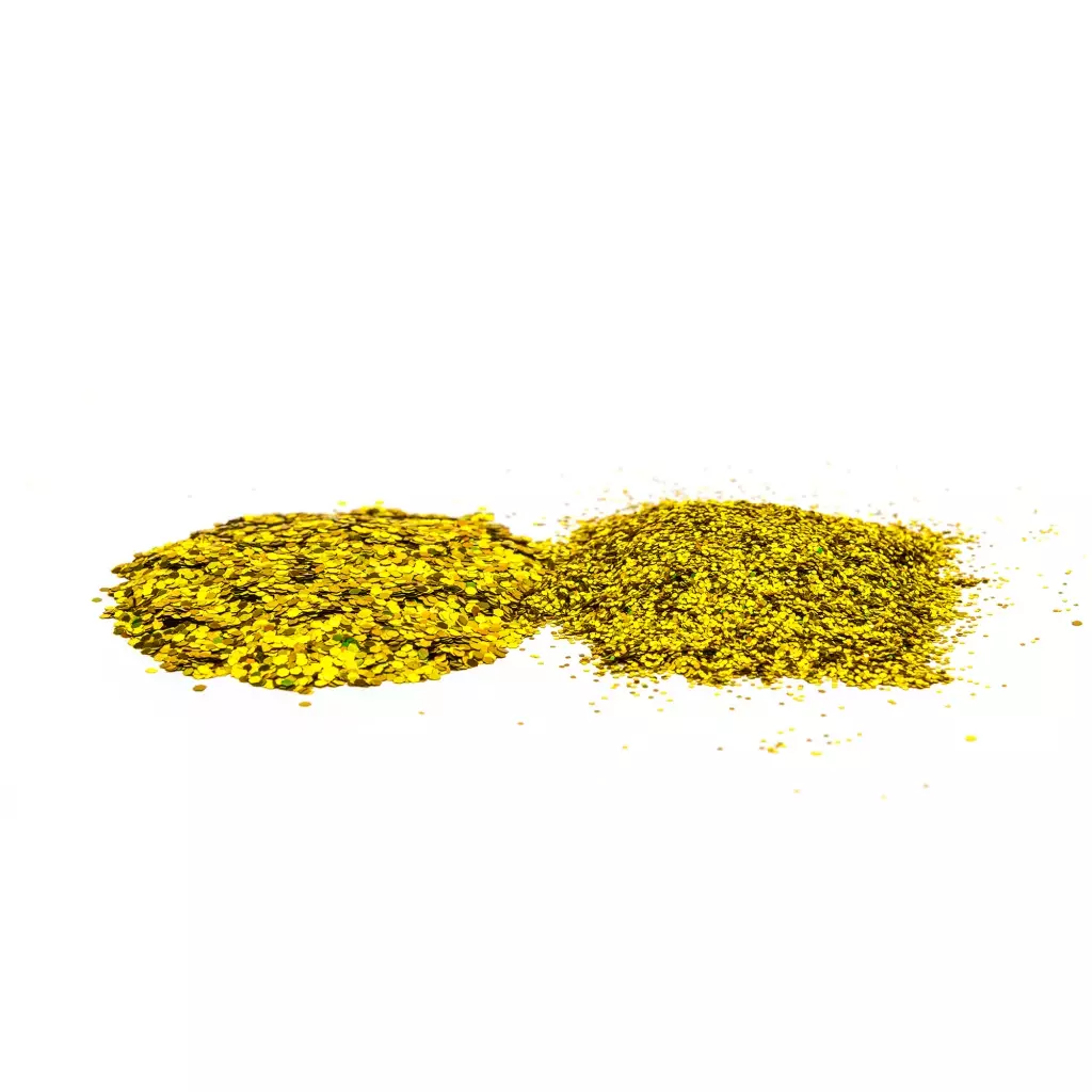 Our Glitter stands heat well and are made of PET/polyester plastic. Beautiful reflections and luster.
