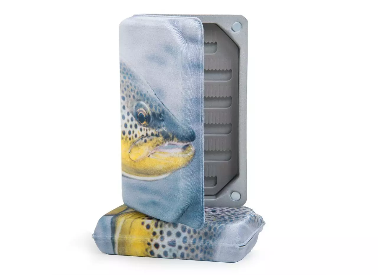Lightweight foam boxes with photographic fish print on the lycra cover. Slit- and Tri foam inside makes placement of flies easy and flexible.