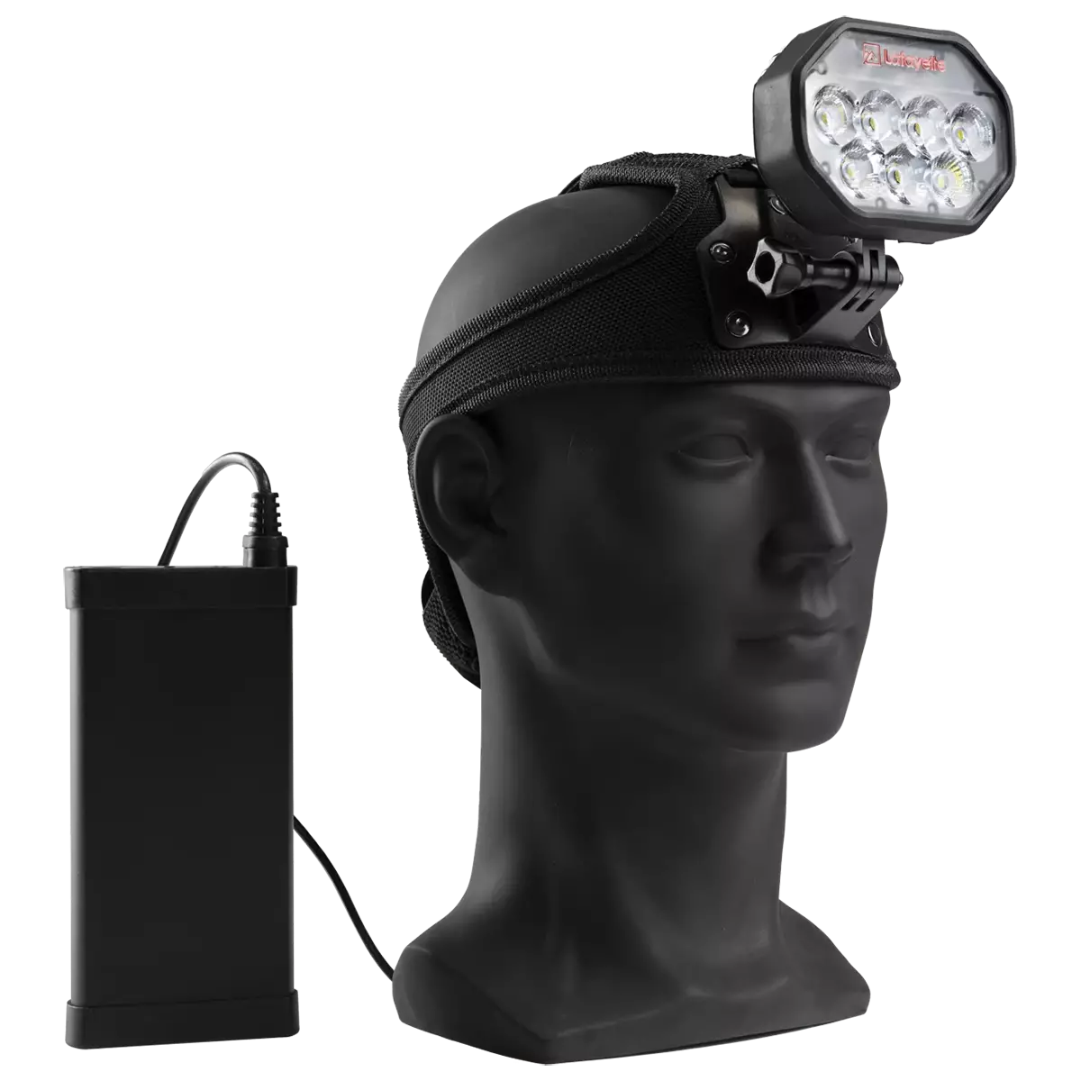 Tehokkaan valaistuksen lisäksi ergonomia on tärkeä seikka, joten muotoilu on tarkkaan harkittua. Päähine tuntuu erittäin miellyttävältä pitkäaikaisessakin käytössä. Yhdessä lisävarustevalikoimastamme löytyvän ainutlaatuisen akkuliivin kanssa voit kantaa suurempaakin vara-akkua pidempään ongelmitta. Liivissä on tilaa kahdelle akulle ja niitä voidaan käyttää samanaikaisesti Y-kaapelin kanssa, jolla voi liittää kaksi akkua yhteen lamppuun. Myös johto löytyy lisävarustevalikoimastamme.