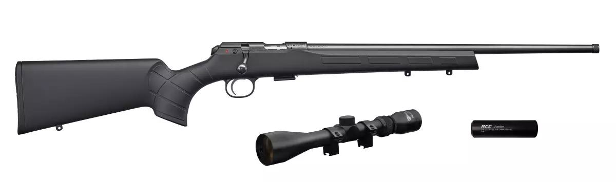 CZ 457 Synthetic on saatavilla kiikaritähtäimen, kiikarinjalat ja vaimentimen sisältävänä pienoiskivääripakettina. Ase on valittavissa kaliipereissa .17 HMR, .22 LR sekä .22 WMR ja tulee aina vaimenninkierteellä varustettuna.