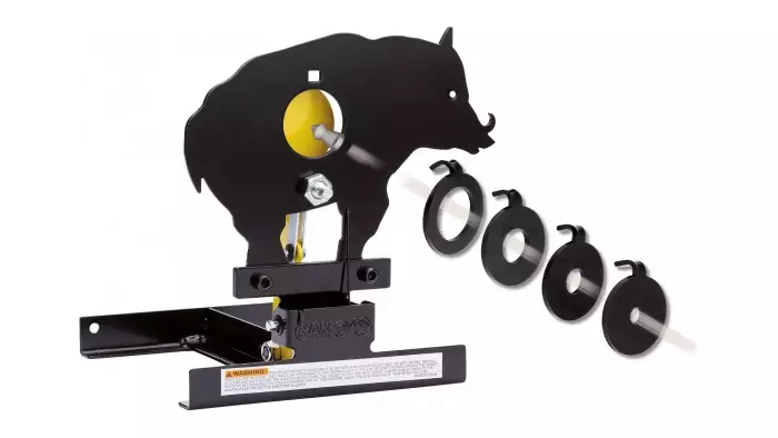 Villisikataulu, jossa neljä erikokoista täplää. Lisää haastetta ammuntaan