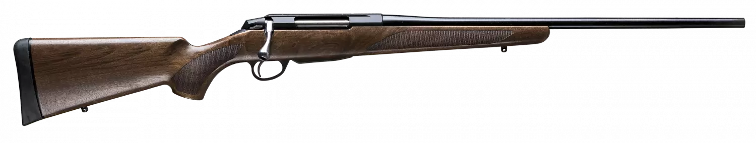 Tikka T3x Hunterin tukin symmetrisyys, karhennuskuviot ja hieno viimeistely takaavat, että ase istuu suomalaisen metsästäjän käteen kuin hansikas.