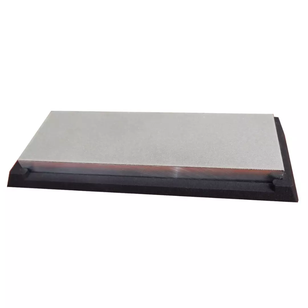 The sharpener is stable during sharpening thanks to its rubber base. The sharpener is reversible and has both a fine and a coarse side of 600 or 300 grit (30 or 60 micron diamonds) or fine/superfine with 600/1200 (30/15 microns) depending on what variant you choose.