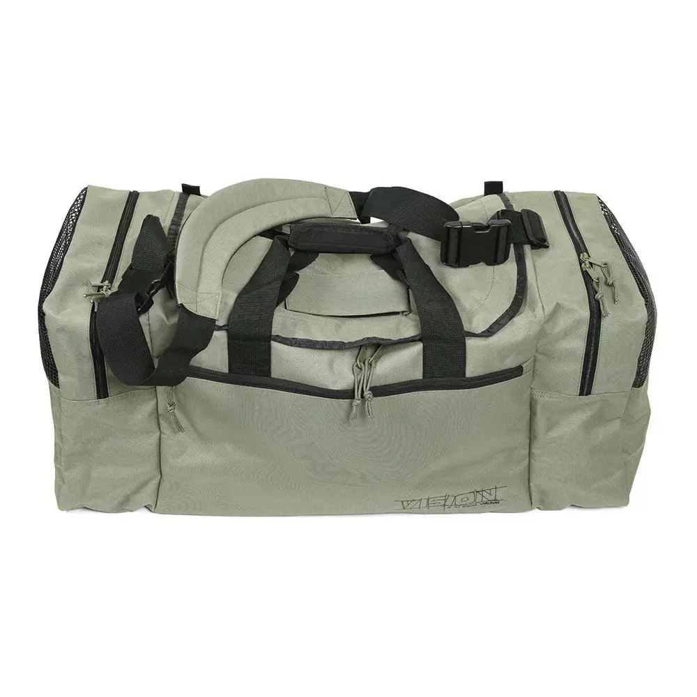 Constructed of tough and durable 600 Denier Oxford polyester cloth, this bag offers the features you need. It has a large main compartment for clothing with a U-shaped zippered entry for dry storage. Mesh storage pockets inside the main compartment with elastic retainer straps hold tackle. Two generous end compartments with drain holes and mesh uppers hold wet waders and boots for drying. The bag is also equipped with a large side pocket for accessories.