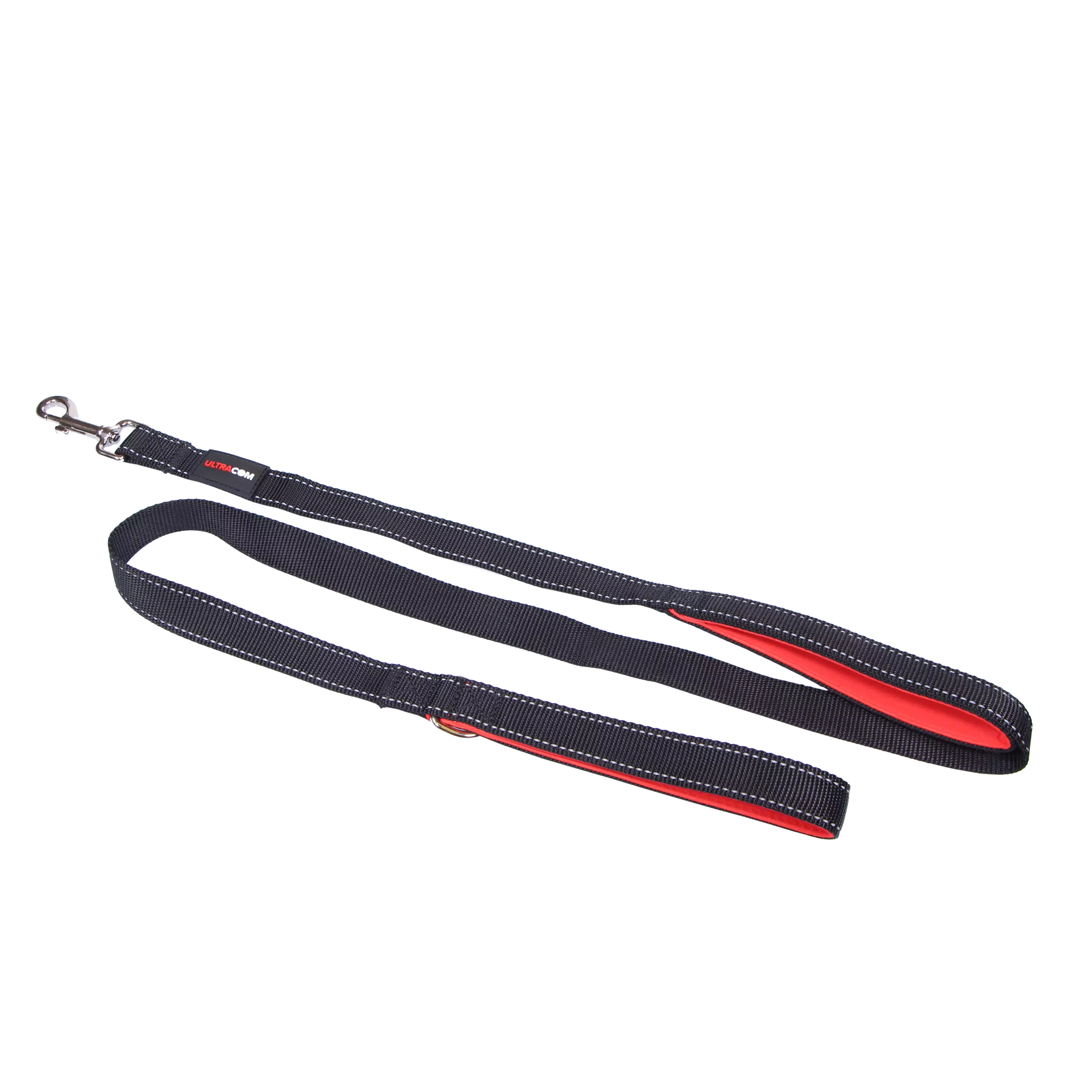 Tyylikäs Ultracom- talutin koirallesi. Hihnassa on kaksi kädensijaa, joten voit hallita koiraasi myös lähietäisyydeltä. Väri musta, jossa punaisella neopreenilla pehmustetut kädensijat, heijastava tikkaus ja Ultracom -logo. Hihnan pituus 150 cm.