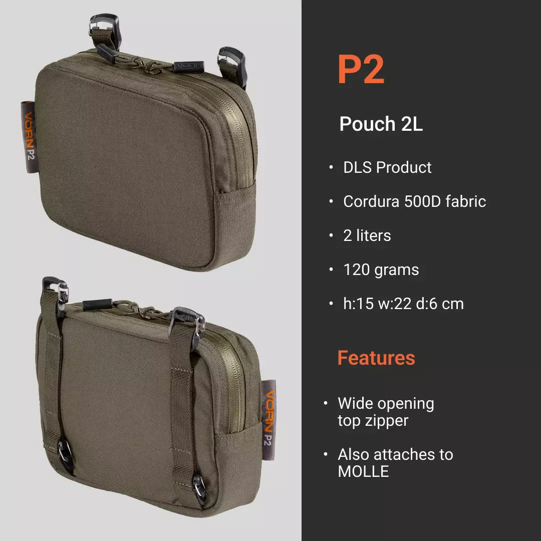 Pouch 2L DLS Product Cordura 500D fabric 2 liters 120 grams h:15 w:22 d:6 cm Features Wide opening top zipper Also attaches to MOLLE
