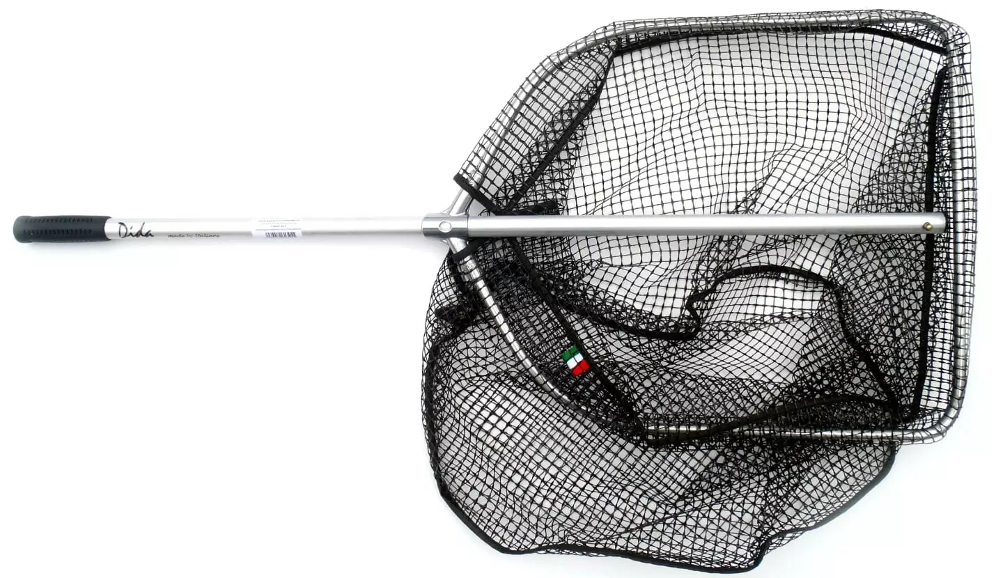 Valmistettu kevyestä alumiinista. Varren pituus on 97cm. Kehikon mitat ovat 45x50m. Kumihavaksella. Syvyys 45cm
