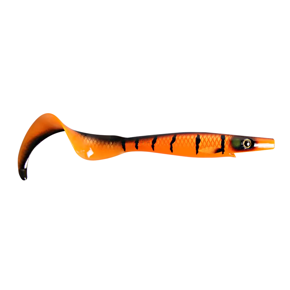 The Pig Tail Junior 23cm is a soft plastic tail bait inspired by the classic jerkbait The Pig. The Pig Tail Jr has a seductive rolling action while the head is slightly rocking from side to side. The tail twists in a low frequent rate and the rattle chamber in the end of the tail creates that clicking sound that can be a real game changer. A perfect imitation of an injured baitfish that slowly trudges forward with its last strengths! The Pig Tail Junior has a unique profile that resembles a slender baitfish. It’s excellent to use with Flexhead Pike and CWC Tandem Stinger Rig. A perfect snack!