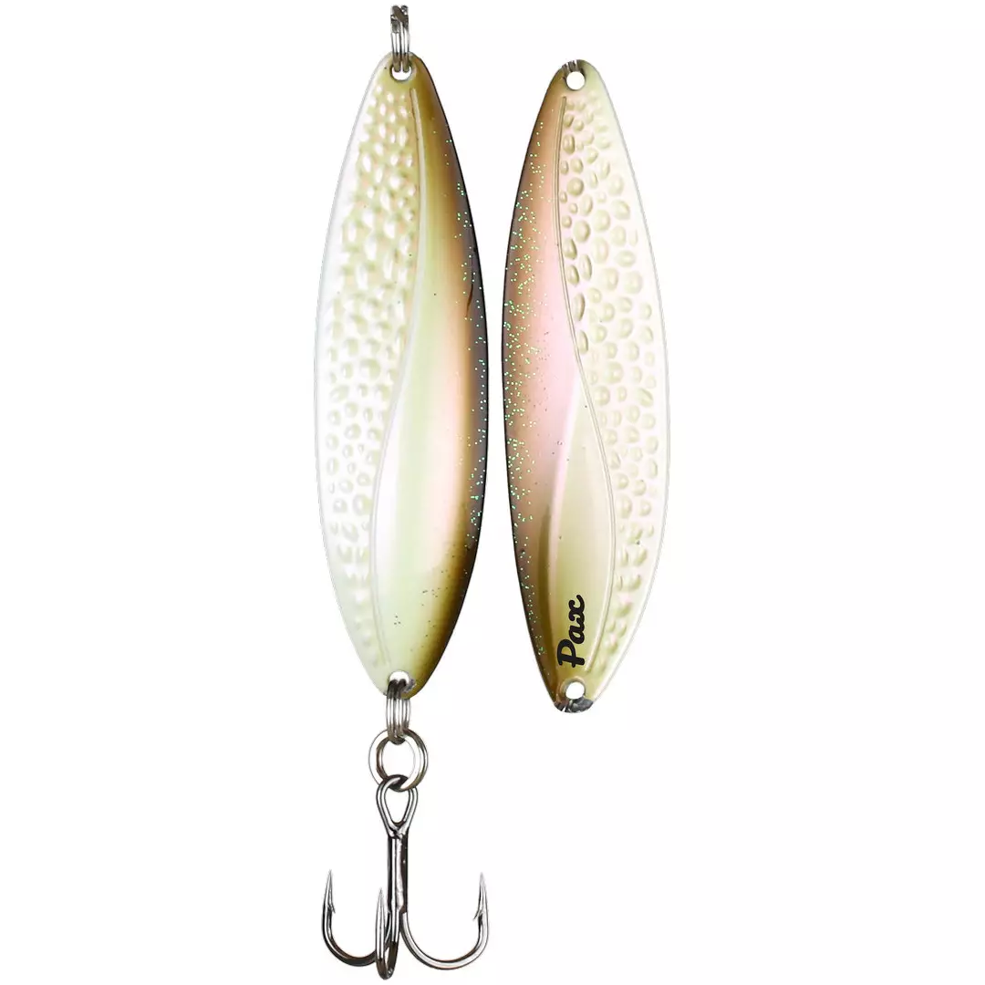 Pax on sinkistä valmistettu lusikkauistin. Siinä on lievästi S-kaareva runko, joka on paksumpi takaosastaan. Tämä muotoilu antaa Paxille elävän uinnin ja laajan liikeradan myös hitaassa uitossa. Täydellinen, kun haluat kalastaa hitaammin ja syvemmältä. Pax on noussut suosikiksi kaikenlaisessa taimenkalastuksessa, aina tunturien rautu- ja taimenvesiltä P&T-järvien kirjolohikalastukseen asti. Lusikkauistin Pax toimitetaan kahdella litistetyllä jousirenkaalla sekä Hurricane HH301GS -kolmihaarakoukulla.