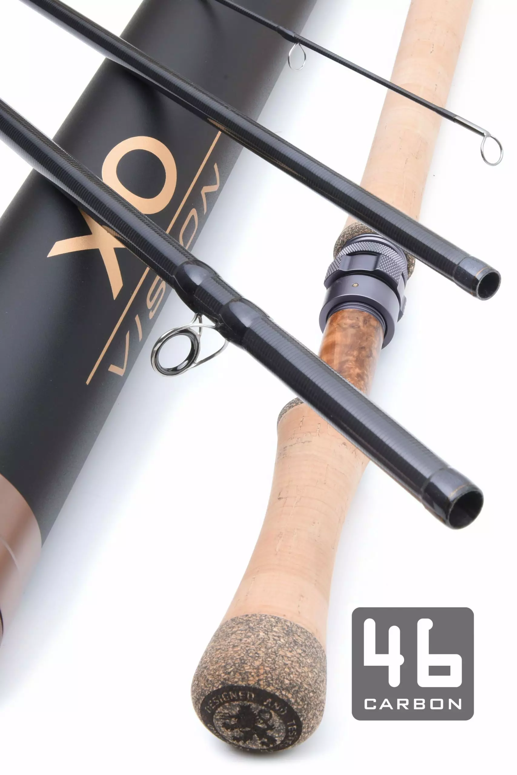 Odotettu XO-malliston jatkumo on nyt totta. Visionin DH-vapojen aatelija. Tätä vapaa suunnitellessa haluttiin toteuttaa vapa tekemättä yhtään kompromissia ja lopputulos on loistava. Maalamaton ja hiomaton 4-.osainen aihio takaa parhaan toiminnan ja tunnokkuuden. Muotoilussa on panostettu korostamaan Suomalaisuutta joten kahvaan, kelakinnikkeen alle on upotettu visakoivuinen viilu. Vaparenkaat ovat American Tacklen valmistamat huippulaadukkaat titaanirenkaat. Yksijalkaiset titaaniset snake-siimanohjaimet takaavata keveyden ja kestävyyden. Kahva on valmistettu Portugalilaisesta AAAA-korkista jossa on kumiseoos vahvikkeet päissä. Kelakiinike on helppotoiminen, kestävä ja alaspäin ruuvautuva lukkorengas takaa lujan kiinnityksen.