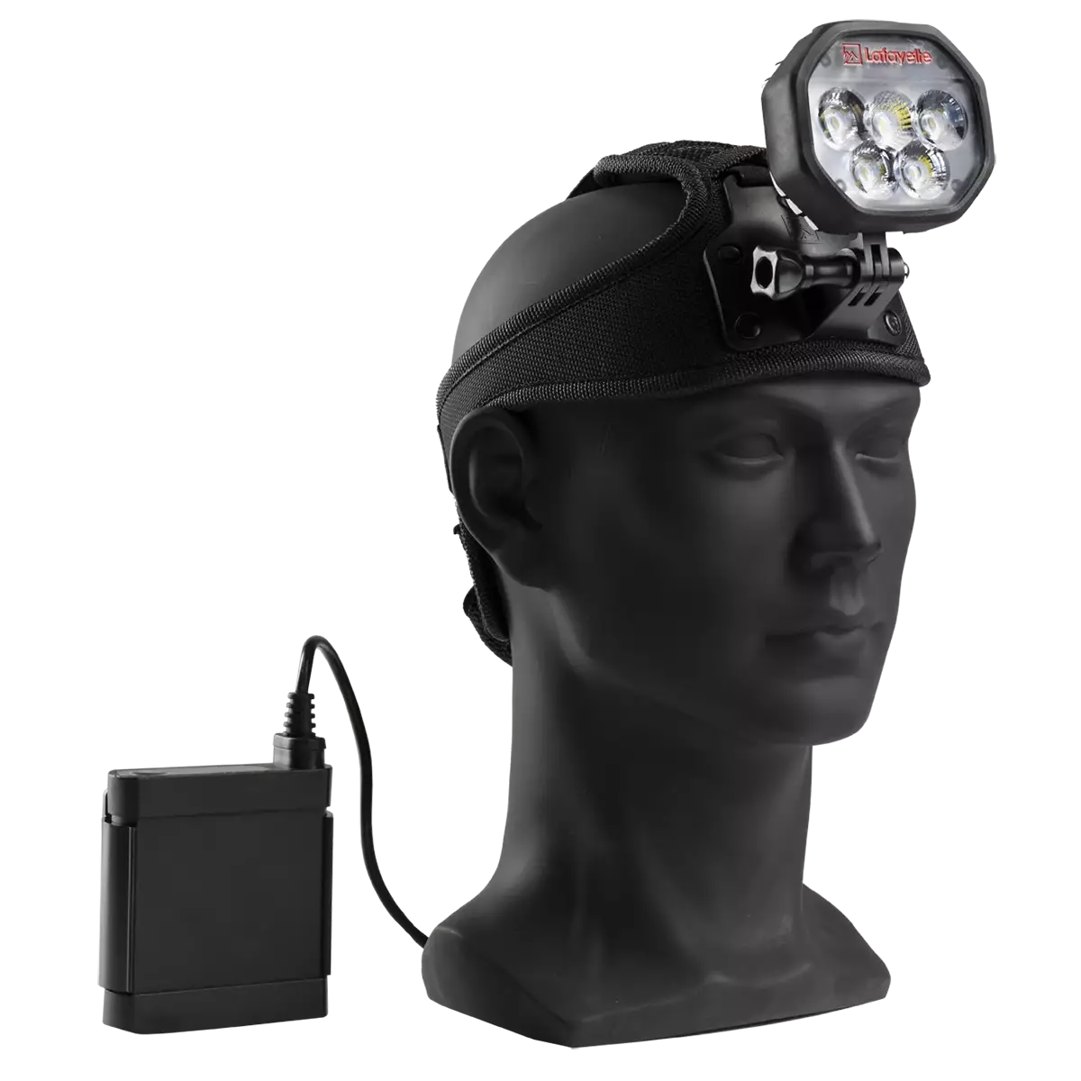 Tehokkaan valaistuksen lisäksi ergonomia on tärkeä seikka, joten muotoilu on tarkkaan harkittua. Päähine tuntuu erittäin miellyttävältä pitkäaikaisessakin käytössä. Yhdessä lisävarustevalikoimastamme löytyvän ainutlaatuisen akkuliivin kanssa voit kantaa suurempaakin vara-akkua pidempään ongelmitta. Liivissä on tilaa kahdelle akulle ja niitä voidaan käyttää samanaikaisesti Y-kaapelin kanssa, jolla voi liittää kaksi akkua yhteen lamppuun. Myös johto löytyy lisävarustevalikoimastamme.