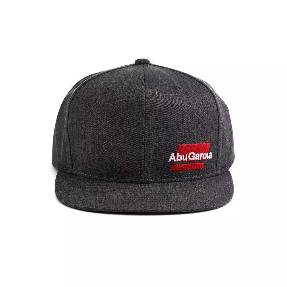 Abu Garcia hats look great on or off the water, and this flat brim lives up to the challenge! This mid crown snapback offers full coverage with heather grey twill on all 6 panels. Branding is subtle with a small Abu embroidered front logo and back loop label.