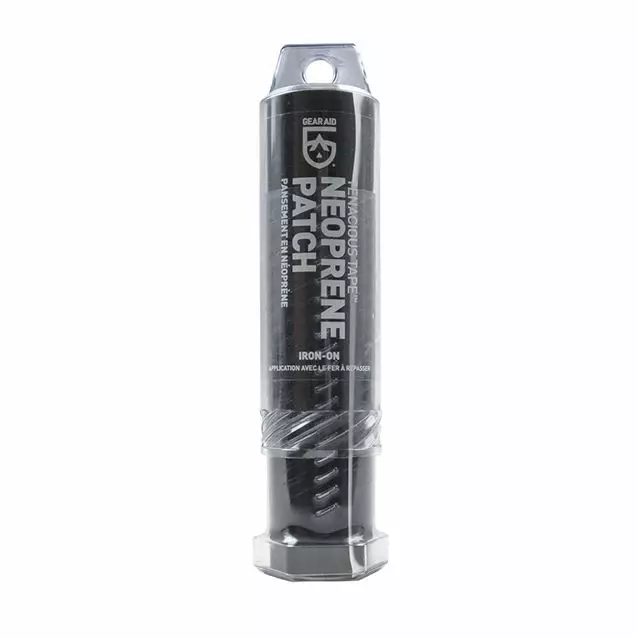 Lämpöaktivoitava kangaspaikka, joka korjaa helposti halkeamia, reikiä ja repeämiä neopreenivarusteista, kuten kahluuhousuista, märkäpuvuista, saappaista ja käsineistä. Paikka tarjoaa ylimääräistä kulutuskestävyyttä, joten voit käyttää sitä myös vahvistamaan erittäin kuluvia alueita.