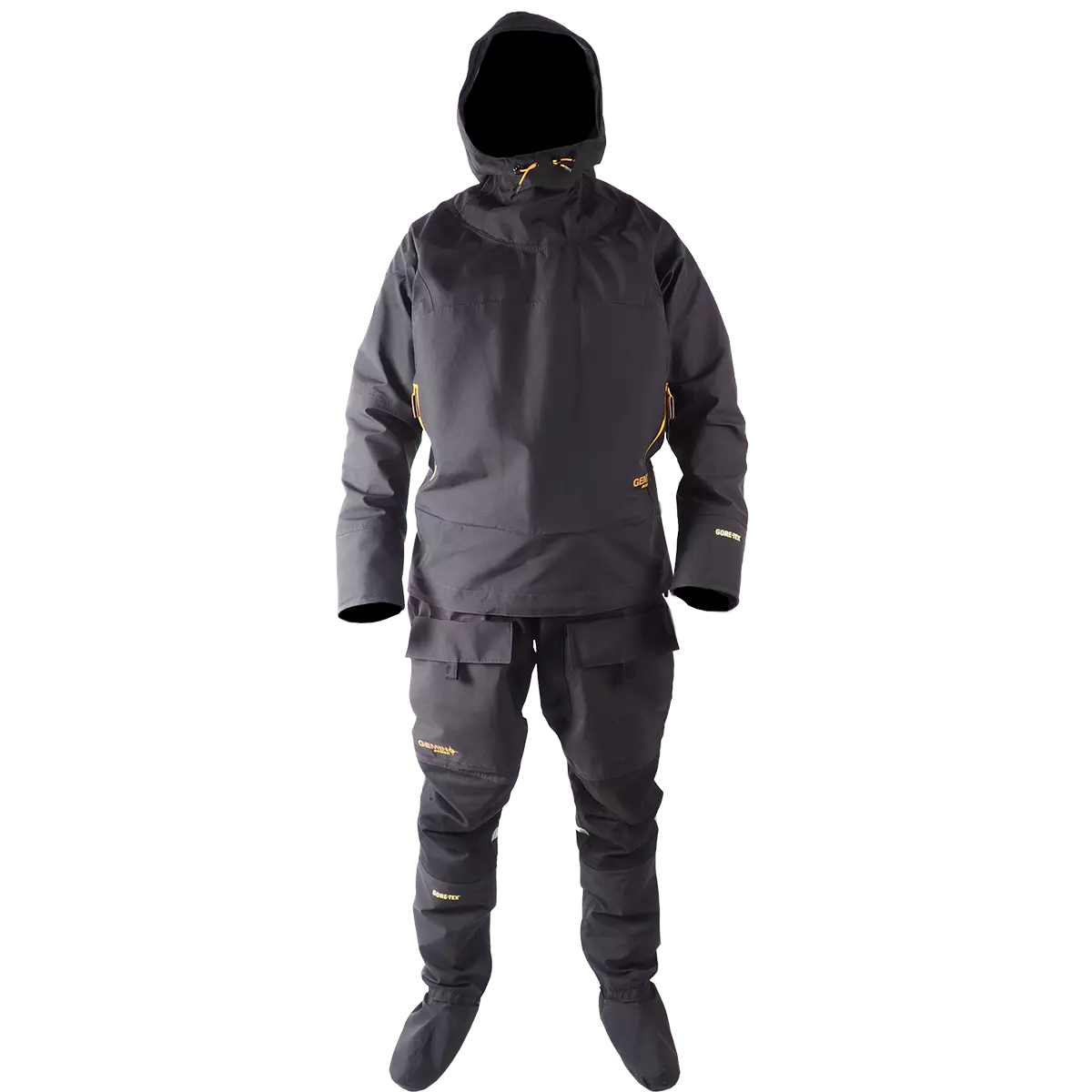 Puku on valmistettu Gore-Tex® Taslan kankaasta, joka on kevyttä ja kulutusta kestävää. Polvi-, kyynärpää-, haara- sekä takamusvahvikkeet on valmistettu Cordurasta ja suojaavat pukua kulumiselta. Neopreeniset kaula- sekä hihamansetit ovat miellyttävät käyttää sekä lämpimät myös kylmissä olosuhteissa. Ursuit Gemino Action on suunniteltu vastaamaan vaativien kalastajien, melojien sekä purjehtijoiden toiveita. Tuotesuunnittelussa olemme erityisesti kiinnittäneet huomiota puvun liikkuvuuteen sekä hupun istuvuuteen, tyylikkäästä ulkonäöstä tinkimättä.