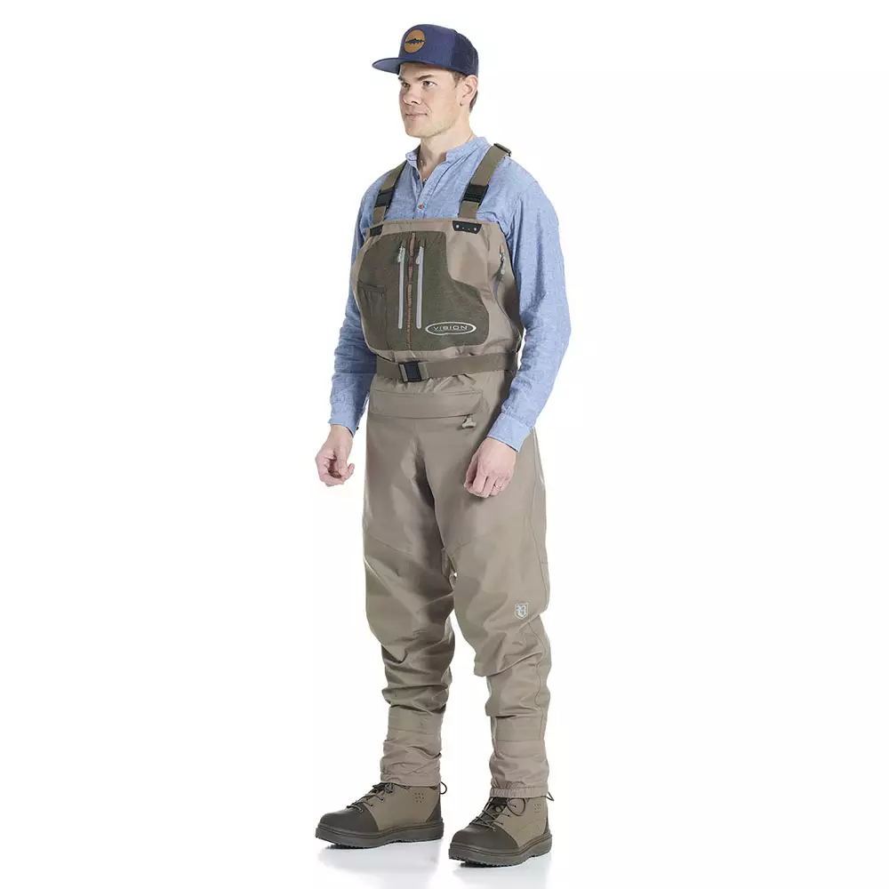 The Tool Relief wader features a very pleasing horizontal relief zipper for the urgent moments when the nature calls. The wader has plenty of pockets and carefully thought-out features for different accessories. The multi-layer stretchable chest pocket has a comfortable hand warmer tunnel. On top of that we made a big main compartment which is divided into two parts, both secured with a vertical zipper. Between the zippers you can find a useful webbing loop strap where you can attach different kinds of tools. On top of the right chest we placed a smaller pocket, under an accessory flap so the item / tools which are hanging can easily been put in and away. Inside the wader there is the traditional flip pocket with Velcro so if you want you can add the separate Vision Waterproof Pouch to give that extra protection to your phone or car keys.