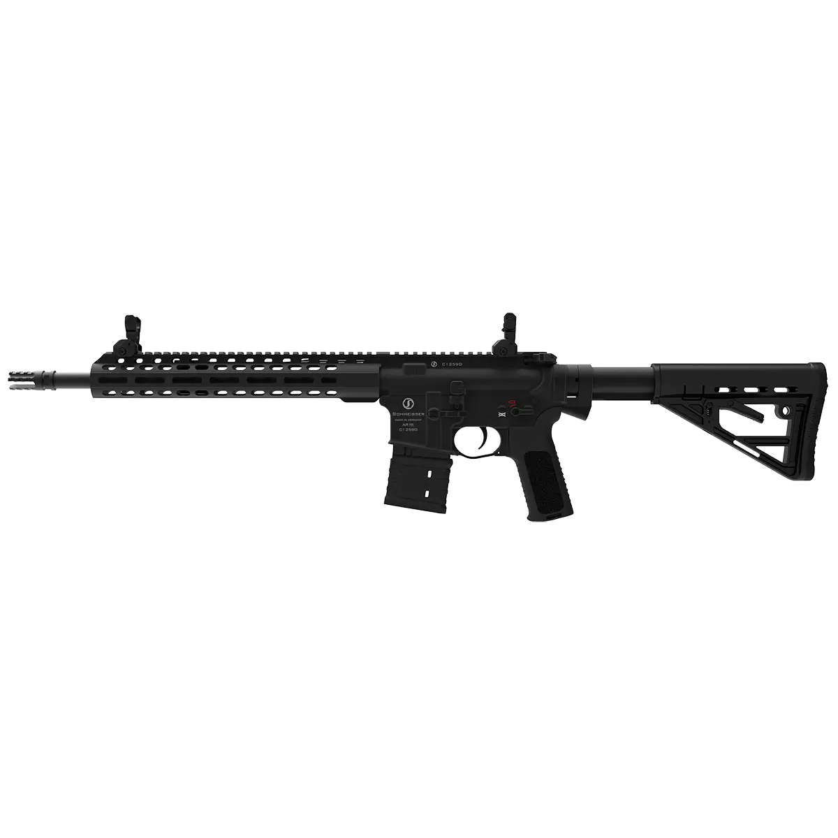 EGENSKAPER: Fullt ambidextriös design, 100% MilSpec, Schmeisser-laddhandtag med gasportar och förlängda vingar, 45°/90°-säkring, ambidextriös slutstycksfrigörare, Schmeisser Multi Wire silent buffer system, solid buffer-tube (MilSpec-rör), 6-positions kolv och Schmeisser pistolgrepp i polymer