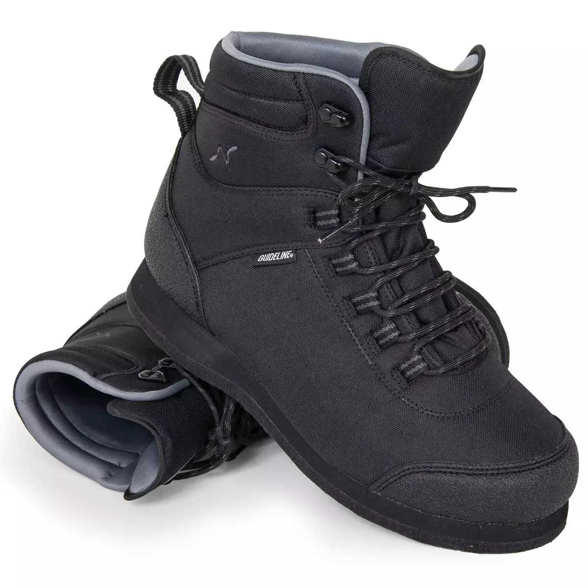 Kaitum Wading Boots are our lightest boots, an affordable alternative for the fisherman who fishes moderate amounts and have high priority on weight before stability. The shoe is made of fast drying materials that does not soak up water. Gusseted tongue and webbing loops for the laces make for fast entry and closing of the boots. The upper part of the boot has quick-lacing hooks and in the back you find a wide webbing loop. The lower part of the boot is reinforced with rubber on heel and toe to resist hard environments and sharp rocks when wading and an EVA mid sole increases comfort and cushioning when walking. Kaitum Wading boots have a wide Scandinavian fit and are extremely lightweight and fast drying which makes them ideal for the travelling angler.