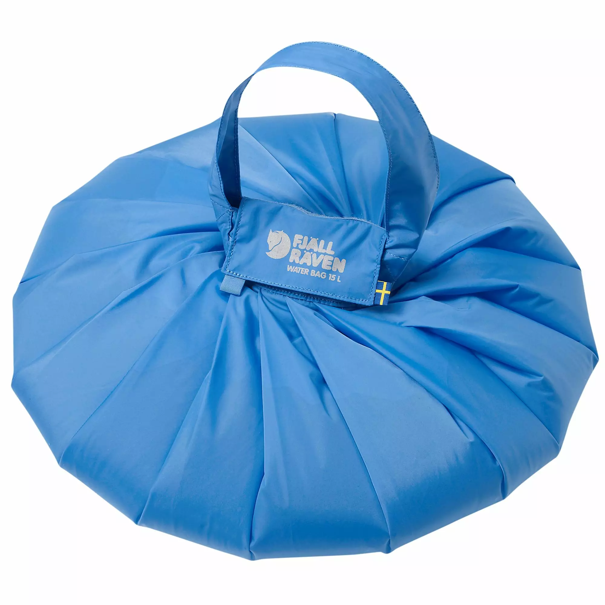 Smidig säck att hämta vatten i, perfekt när du slagit läger en bit ifrån vattenkällan. Kan stå för sig själv på marken. Praktiskt stänkskydd med kardborreförslutning gör det enklare att bära utan att det stänker, dessutom skyddas innehållet mot skräp när du ställer säcken ifrån dig. Rullas lätt ihop och tar liten plats när den inte används. Färgen UN Blue är en av de mest synliga nyanserna, i alla väder och typer av terräng.