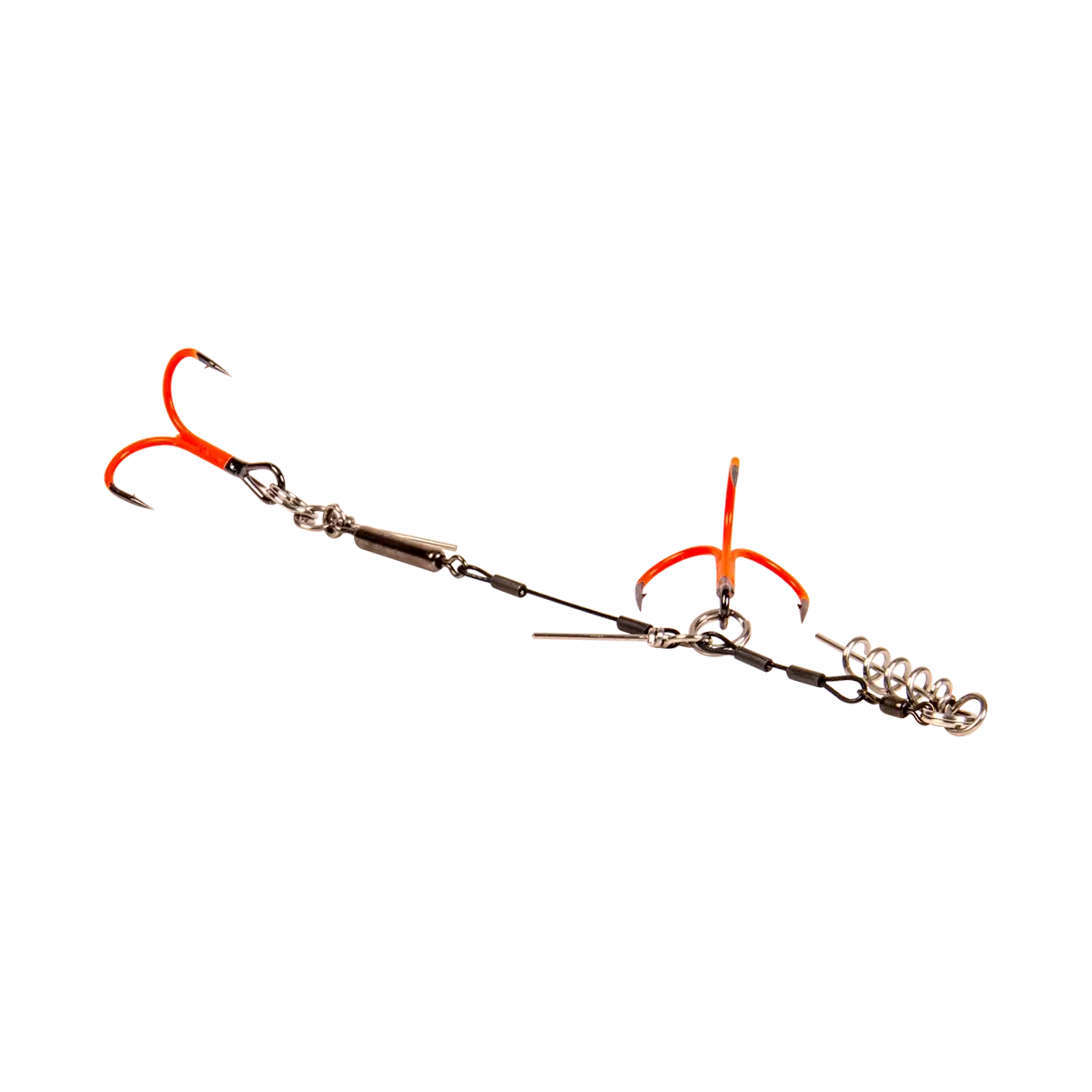 CWC Rattle UV Orange Stingers are made from nylon-coated 7-strand stainless steel wire. Each stinger features a stainless swivel with an integrated rattle chamber and copper locking sleeves. It comes with a CWC Stinger Spike and Shallow Screw, using flattened 2X-strong split rings for a smooth connection to the BFT Flexhead® Pike. Fitted with a laser-ground, UV-coated treble hook. Developed and designed for use with the Pig® Shad range.